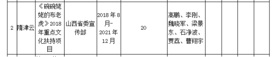 根据山西省委宣传部,关于2018年重点文化扶持项目通知。