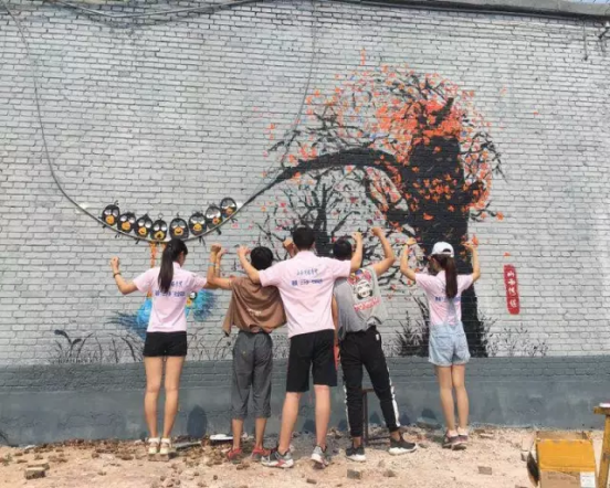 我院于七月十一日由李乾老师带队出发至祁县城赵镇丰固村扶贫攻坚,我系也结合了专业优势,为祁县进行七天志愿墙绘,响应学院“拓展创意产业+,决胜脱贫大攻坚”为主题的社会实践活动的号召。